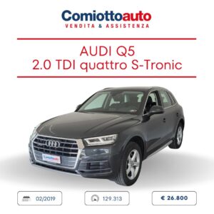 AUDI Q5 40 TDI quattro S tronic Business Sport Mantenuta con la massima cura. Precedente proprietario non fumatore. Alimentazione: gasolio Cilindrata cm3: 1968 Potenza kW/CV: 140,0/190 Carrozzeria: fuoristrada/SUV 5 porte Normativa: Euro6.d tmp MOTORE Alimentazione…