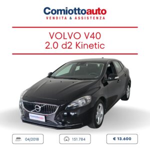 VOLVO V40 D2 Kinetic Business  Autovettura in perfetto stato. Anche adatta ai neopatentati. Alimentazione: gasolio Cilindrata cm3: 1969 Potenza kW/CV: 88,0/120 Carrozzeria: berlina 2 volumi Normativa: Euro6 MOTORE Alimentazione gasolio – 4 cilindri in linea…